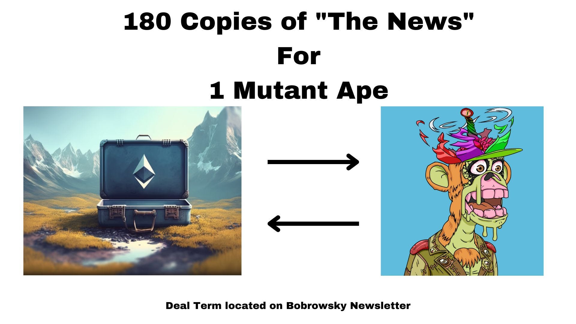 The first person to send me 180 copies of The News: Edition 1 will receive Mutant Ape #19678