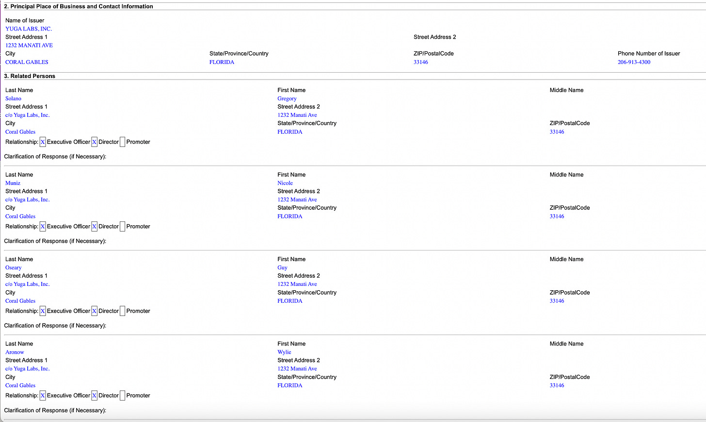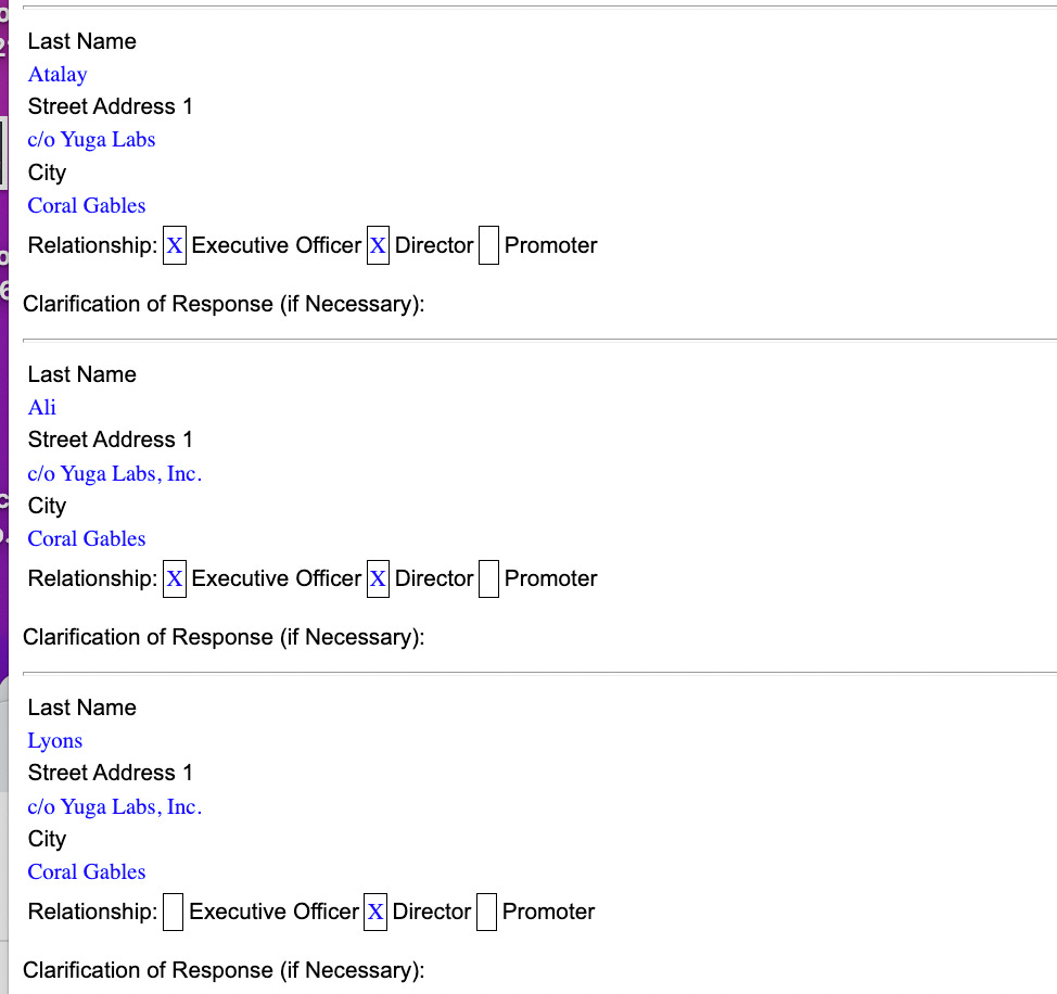 I am unsure of who are the exact board members of Yuga Labs but I do believe that Christopher Lyons of A16Z is on the board of directors along with Nicole Muniz. For a point of reference A16Z was the lead investor in the $450 million round of funding.