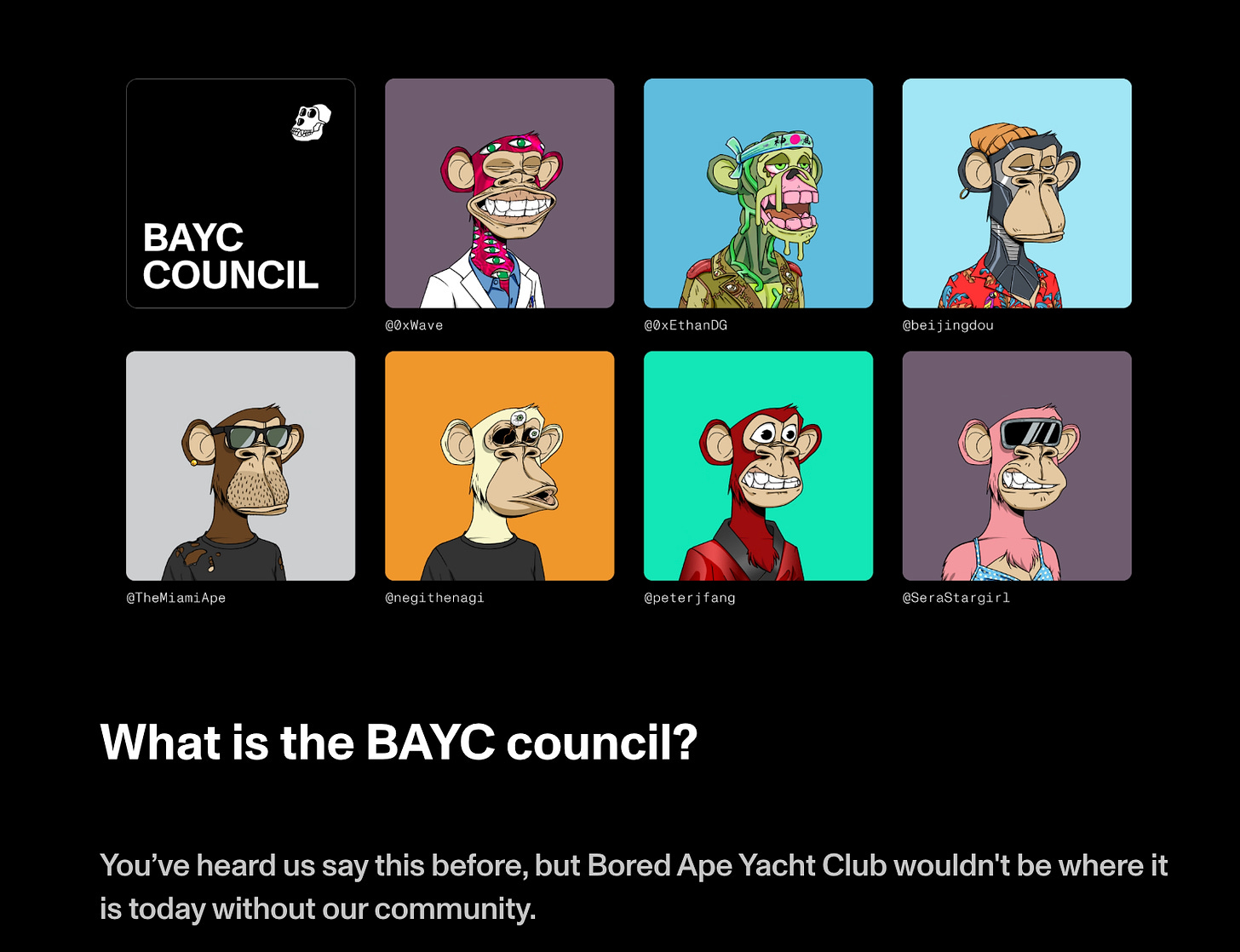 As a small new update, Bored Ape Yacht Club has added a community council of 7 community members who will listen to what the community has to say.